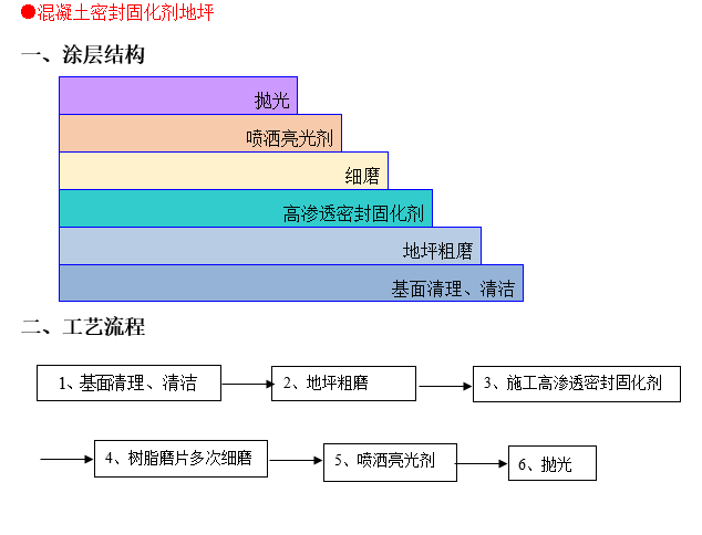5.防尘和易清洁:由于密封固化剂形成了致密的硅酸盐晶体结构,地面表面变得平整且不易产生灰尘。这使得地坪具有防尘效果,并且容易清洁维护。