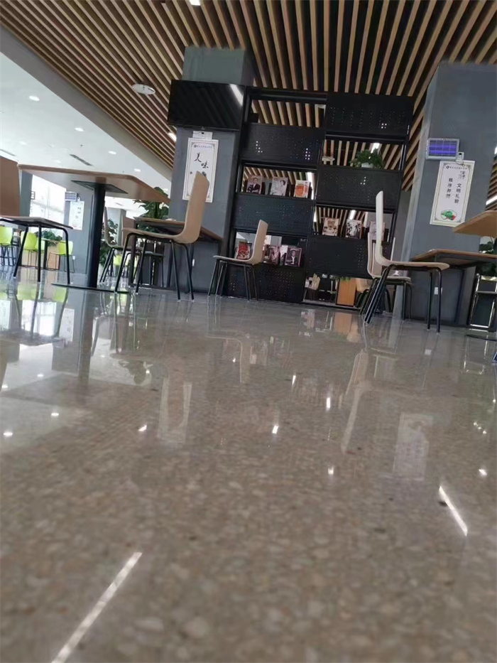 5.易清洁:环氧磨石地坪具有平整、无缝的表面,不易积聚灰尘和污垢,非常易于清洁和维护。