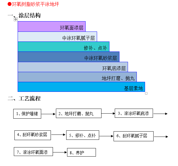 2.施工过程:环氧平涂的施工相对简单,通常需要经验丰富的施工人员来确保涂层的均匀性和质量。在施工前,需要对地面进行充分的清洁和处理,以保证地坪涂料与地面的良好附着性。然后将环氧地坪涂料均匀地涂抹在地面上,通过辊涂或刮涂等方法使其形成平整的涂层。