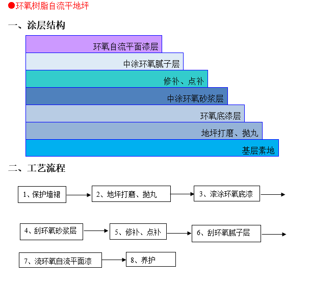 2.自流平性能:环氧自流平地坪的涂料具有较低的黏度,在施工时可以自行流平并形成平整的表面,填平地面上的小凹陷和不平整。