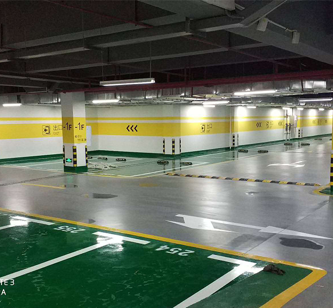 室内停车场使用固化剂地坪有许多优势,特别是对于车辆停放、交通频繁的区域。以下是固化剂地坪在停车场中的优势: